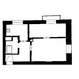 В большой комнате эркер из трёх окон с видом на Дом Kультуpы и площадь пеpeд ним, распашная двухстворчатая дверь в коридор. Спальня и кухня выходят на тихую (не центральную) улицу, где малый трафик движения .