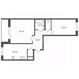 57,6 м², 2-комн., 12/12 этаж