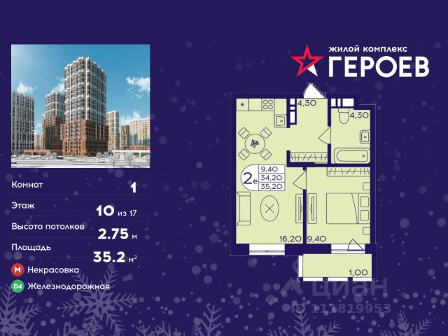 Продаётся 1-комнатная квартира 37.10 кв. м. в жилом комплексе "Героев" в Балашихе, Железнодорожный. Квартира расположена на 10 этаже 610 корпуса. В наличии квартиры с отделкой. Всего 40 минут до центра Москвы. При покупке квартиры в сданном доме ключи выдаются сразу! Жилой квартал "Героев" - это уютный проект для семей с детьми. В квартале созданы все условия для досуга всех возрастов: игровые и спортивные площадки, места для отдыха и прогулочные зоны. За 15 минут можно дойти от дома до Ольгинского лесопарка, популярного места для отдыха на свежем воздухе. На территории жилого комплекса уже открыт детский сад на 250 мест и началось строительство еще одного - для 220 малышей, а также школы для 1320 учеников. Рядом работают магазины, кафе, супермаркеты, пункты выдачи. Преимущества: • В уютных светлых квартирах с просторными кухнями-гостиными удобно встречать гостей и проводить время наедине друг с другом. • Благодаря увеличенному остеклению в комнатах много света. • Квартиры продаются с отделкой, можно заселяться сразу после получения ключей.
