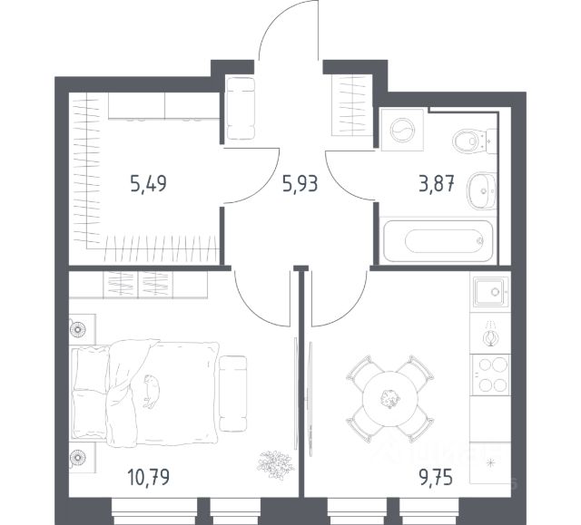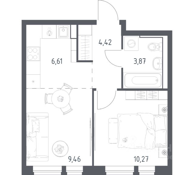 Продаётся 1-комнатная квартира 10, площадью 35,80 м², на 2 этаже в ЖК "Новая Алексеевская роща" корпус 4. Стоимость — от 6790073 руб. Квартира без отделки, планировка односторонняя, окна во двор.