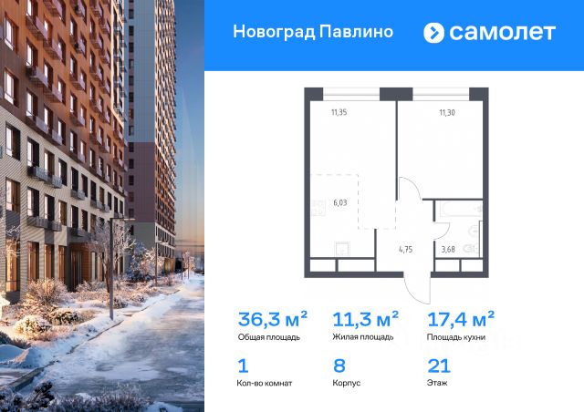 Строим кварталы для жизни с заботой о будущем. Предлагается 1-комнатная квартира комфорт-класса 36,5 кв.м в корпусе 8 на 20 этаже, в ЖК "Новоград Павлино" Квартира без отделки. Доступность опции "отделка" и возможность комплектации мебелью и декором уточняйте у застройщика. Приобрести квартиру возможно по специальным акциям от застройщика, с текущими условиями акций можно ознакомиться в блоке "Акций". Цена динамическая и может отличаться, уточняйте актуальность у застройщика. "Новоград Павлино" находится в 13 км от МКАД рядом с рекой Пехорка и в окружении трех лесопарков - Павлинского, Салтыковского и Ольгинского. Современные монолитно-кирпичные дома с широким выбором квартир. В жилом комплексе представлены разные планировки европейского формата с высотой потолков 2,8 м. 1-комнатная квартира в готовой новостройке в микрорайоне Новое Павлино в городе Балашиха.