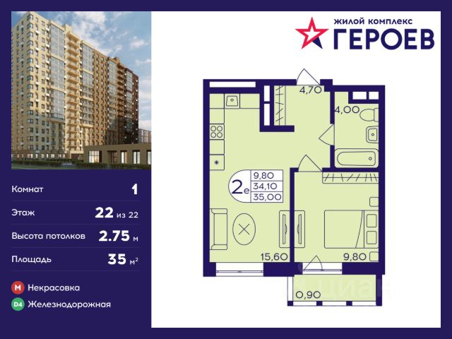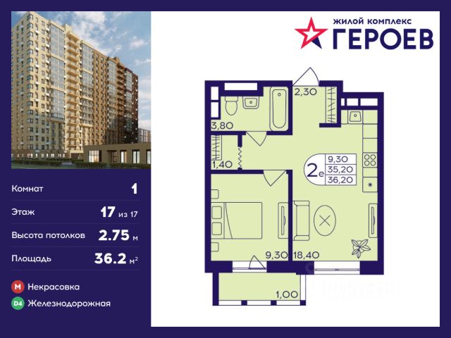 Продаётся 1-комнатная квартира 37.10 кв. м. в жилом комплексе "Героев" в Балашихе, Железнодорожный. Квартира расположена на 23 этаже 610 корпуса. В наличии квартиры с отделкой. Всего 40 минут до центра Москвы. При покупке квартиры в сданном доме ключи выдаются сразу! Жилой квартал "Героев" - это уютный проект для семей с детьми. В квартале созданы все условия для досуга всех возрастов: игровые и спортивные площадки, места для отдыха и прогулочные зоны. За 15 минут можно дойти от дома до Ольгинского лесопарка, популярного места для отдыха на свежем воздухе. На территории жилого комплекса уже открыт детский сад на 250 мест и началось строительство еще одного - для 220 малышей, а также школы для 1320 учеников. Рядом работают магазины, кафе, супермаркеты, пункты выдачи. Преимущества: • В уютных светлых квартирах с просторными кухнями-гостиными удобно встречать гостей и проводить время наедине друг с другом. • Благодаря увеличенному остеклению в комнатах много света. • Квартиры продаются с отделкой, можно заселяться сразу после получения ключей.
