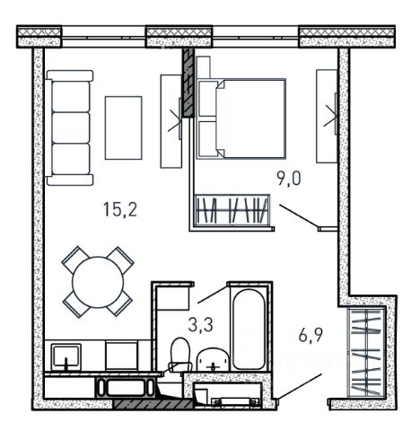 Продаётся 1-комнатная квартира 213, площадью 34,34 м², на 15 этаже в ЖК "Новая Алексеевская роща" корпус 4. Стоимость — от 7165425 руб. Квартира без отделки, планировка односторонняя, окна во двор.