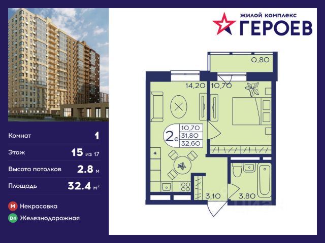 Продаётся 1-комнатная квартира 35.10 кв. м. в жилом комплексе "Героев" в Балашихе, Железнодорожный. Квартира расположена на 23 этаже 610 корпуса. В наличии квартиры с отделкой. Всего 40 минут до центра Москвы. При покупке квартиры в сданном доме ключи выдаются сразу! Жилой квартал "Героев" - это уютный проект для семей с детьми. В квартале созданы все условия для досуга всех возрастов: игровые и спортивные площадки, места для отдыха и прогулочные зоны. За 15 минут можно дойти от дома до Ольгинского лесопарка, популярного места для отдыха на свежем воздухе. На территории жилого комплекса уже открыт детский сад на 250 мест и началось строительство еще одного - для 220 малышей, а также школы для 1320 учеников. Рядом работают магазины, кафе, супермаркеты, пункты выдачи. Преимущества: • В уютных светлых квартирах с просторными кухнями-гостиными удобно встречать гостей и проводить время наедине друг с другом. • Благодаря увеличенному остеклению в комнатах много света. • Квартиры продаются с отделкой, можно заселяться сразу после получения ключей. Продам 1-комнатную квартиру с отделкой в Балашихе.