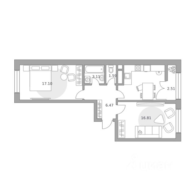Продаётся 2-комнатная квартира 24, площадью 56,27 м², на 6 этаже в ЖК "Пехра" корпус 8.1. Стоимость — от 10570514 руб. Квартира без отделки, планировка односторонняя, окна во двор.