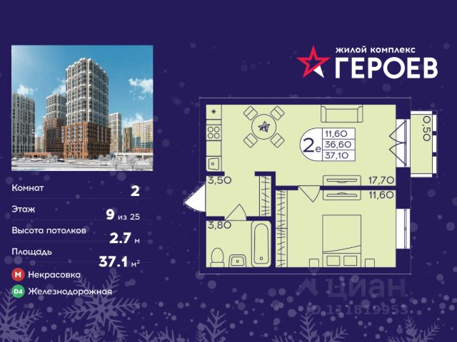 Продаётся 2-комнатная квартира в формате евро 37.10 кв. м. в жилом комплексе "Героев" в Балашихе, Железнодорожный. Квартира расположена на 9 этаже 611 корпуса. В наличии квартиры с отделкой. Всего 40 минут до центра Москвы. При покупке квартиры в сданном доме ключи выдаются сразу! Жилой квартал "Героев" - это уютный проект для семей с детьми. В квартале созданы все условия для досуга всех возрастов: игровые и спортивные площадки, места для отдыха и прогулочные зоны. За 15 минут можно дойти от дома до Ольгинского лесопарка, популярного места для отдыха на свежем воздухе. На территории жилого комплекса уже открыт детский сад на 250 мест и началось строительство еще одного - для 220 малышей, а также школы для 1320 учеников. Рядом работают магазины, кафе, супермаркеты, пункты выдачи. Преимущества: • В уютных светлых квартирах с просторными кухнями-гостиными удобно встречать гостей и проводить время наедине друг с другом. • Благодаря увеличенному остеклению в комнатах много света. • Квартиры продаются с отделкой, можно заселяться сразу после получения ключей.