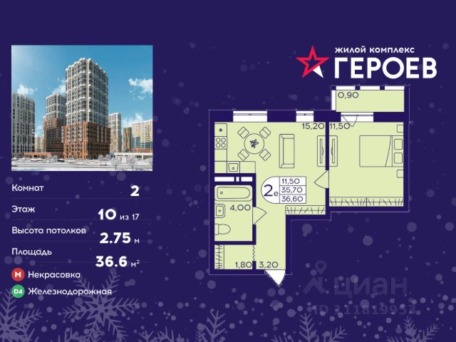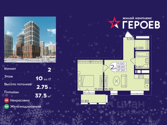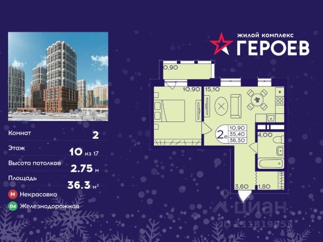 Продаётся 2-комнатная квартира в формате евро 36.50 кв. м. в жилом комплексе "Героев" в Балашихе, Железнодорожный. Квартира расположена на 10 этаже 411 корпуса. В наличии квартиры с отделкой. Всего 40 минут до центра Москвы. При покупке квартиры в сданном доме ключи выдаются сразу! Жилой квартал "Героев" - это уютный проект для семей с детьми. В квартале созданы все условия для досуга всех возрастов: игровые и спортивные площадки, места для отдыха и прогулочные зоны. За 15 минут можно дойти от дома до Ольгинского лесопарка, популярного места для отдыха на свежем воздухе. На территории жилого комплекса уже открыт детский сад на 250 мест и началось строительство еще одного - для 220 малышей, а также школы для 1320 учеников. Рядом работают магазины, кафе, супермаркеты, пункты выдачи. Преимущества: • В уютных светлых квартирах с просторными кухнями-гостиными удобно встречать гостей и проводить время наедине друг с другом. • Благодаря увеличенному остеклению в комнатах много света. • Квартиры продаются с отделкой, можно заселяться сразу после получения ключей.