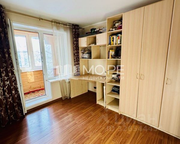 В спальне большой 3-х метровый встроенный шкаф-купе со штангами, полками, ящиками и анстресолями. Новая кровать с подъемных механизмом с системой хранения, основания ламели, обивка велюр.