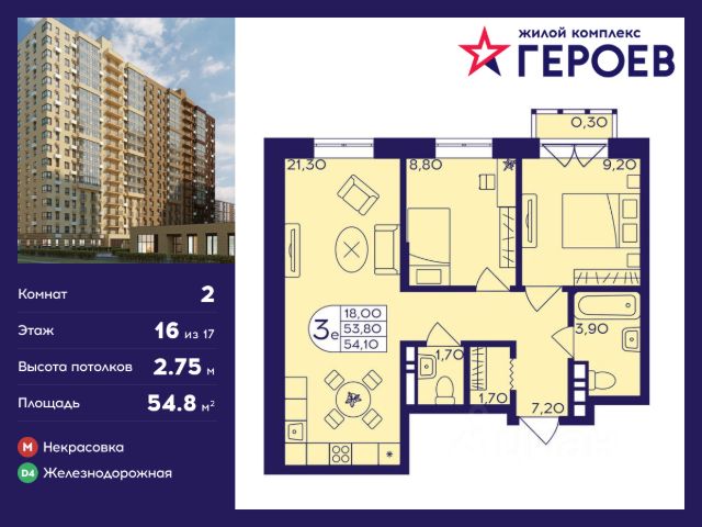 Продаётся 2-комнатная квартира 50.40 кв. м. в жилом комплексе "Героев" в Балашихе, Железнодорожный. Квартира расположена на 16 этаже 413 корпуса. В наличии квартиры с отделкой. Всего 40 минут до центра Москвы. При покупке квартиры в сданном доме ключи выдаются сразу! Жилой квартал "Героев" - это уютный проект для семей с детьми. В квартале созданы все условия для досуга всех возрастов: игровые и спортивные площадки, места для отдыха и прогулочные зоны. За 15 минут можно дойти от дома до Ольгинского лесопарка, популярного места для отдыха на свежем воздухе. На территории жилого комплекса уже открыт детский сад на 250 мест и началось строительство еще одного - для 220 малышей, а также школы для 1320 учеников. Рядом работают магазины, кафе, супермаркеты, пункты выдачи. Преимущества: • В уютных светлых квартирах с просторными кухнями-гостиными удобно встречать гостей и проводить время наедине друг с другом. • Благодаря увеличенному остеклению в комнатах много света. • Квартиры продаются с отделкой, можно заселяться сразу после получения ключей.