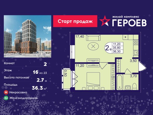 Продаётся 2-комнатная квартира в формате евро 36.30 кв. м. в жилом комплексе "Героев" в Балашихе, Железнодорожный. Квартира расположена на 16 этаже 610 корпуса. В наличии квартиры с отделкой. Всего 40 минут до центра Москвы. При покупке квартиры в сданном доме ключи выдаются сразу! Жилой квартал "Героев" - это уютный проект для семей с детьми. В квартале созданы все условия для досуга всех возрастов: игровые и спортивные площадки, места для отдыха и прогулочные зоны. За 15 минут можно дойти от дома до Ольгинского лесопарка, популярного места для отдыха на свежем воздухе. На территории жилого комплекса уже открыт детский сад на 250 мест и началось строительство еще одного - для 220 малышей, а также школы для 1320 учеников. Рядом работают магазины, кафе, супермаркеты, пункты выдачи. Преимущества: • В уютных светлых квартирах с просторными кухнями-гостиными удобно встречать гостей и проводить время наедине друг с другом. • Благодаря увеличенному остеклению в комнатах много света. • Квартиры продаются с отделкой, можно заселяться сразу после получения ключей.