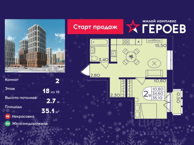 Продаётся 2-комнатная квартира в формате евро 35.20 кв. м. в жилом комплексе "Героев" в Балашихе, Железнодорожный. Квартира расположена на 17 этаже 411 корпуса. В наличии квартиры с отделкой. Всего 40 минут до центра Москвы. При покупке квартиры в сданном доме ключи выдаются сразу! Жилой квартал "Героев" - это уютный проект для семей с детьми. В квартале созданы все условия для досуга всех возрастов: игровые и спортивные площадки, места для отдыха и прогулочные зоны. За 15 минут можно дойти от дома до Ольгинского лесопарка, популярного места для отдыха на свежем воздухе. На территории жилого комплекса уже открыт детский сад на 250 мест и началось строительство еще одного - для 220 малышей, а также школы для 1320 учеников. Рядом работают магазины, кафе, супермаркеты, пункты выдачи. Преимущества: • В уютных светлых квартирах с просторными кухнями-гостиными удобно встречать гостей и проводить время наедине друг с другом. • Благодаря увеличенному остеклению в комнатах много света. • Квартиры продаются с отделкой, можно заселяться сразу после получения ключей.