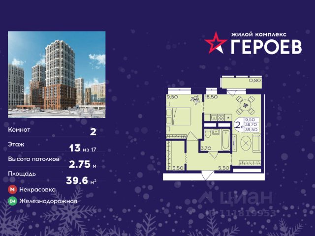 Продаётся 2-комнатная квартира в формате евро 39.60 кв. м. в жилом комплексе "Героев" в Балашихе, Железнодорожный. Квартира расположена на 13 этаже 413 корпуса. В наличии квартиры с отделкой. Всего 40 минут до центра Москвы. При покупке квартиры в сданном доме ключи выдаются сразу! Жилой квартал "Героев" - это уютный проект для семей с детьми. В квартале созданы все условия для досуга всех возрастов: игровые и спортивные площадки, места для отдыха и прогулочные зоны. За 15 минут можно дойти от дома до Ольгинского лесопарка, популярного места для отдыха на свежем воздухе. На территории жилого комплекса уже открыт детский сад на 250 мест и началось строительство еще одного - для 220 малышей, а также школы для 1320 учеников. Рядом работают магазины, кафе, супермаркеты, пункты выдачи. Преимущества: • В уютных светлых квартирах с просторными кухнями-гостиными удобно встречать гостей и проводить время наедине друг с другом. • Благодаря увеличенному остеклению в комнатах много света. • Квартиры продаются с отделкой, можно заселяться сразу после получения ключей.