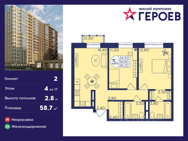 Продаётся 2-комнатная квартира 49.40 кв. м. в жилом комплексе "Героев" в Балашихе, Железнодорожный. Квартира расположена на 4 этаже 610 корпуса. В наличии квартиры с отделкой. Всего 40 минут до центра Москвы. При покупке квартиры в сданном доме ключи выдаются сразу! Жилой квартал "Героев" - это уютный проект для семей с детьми. В квартале созданы все условия для досуга всех возрастов: игровые и спортивные площадки, места для отдыха и прогулочные зоны. За 15 минут можно дойти от дома до Ольгинского лесопарка, популярного места для отдыха на свежем воздухе. На территории жилого комплекса уже открыт детский сад на 250 мест и началось строительство еще одного - для 220 малышей, а также школы для 1320 учеников. Рядом работают магазины, кафе, супермаркеты, пункты выдачи. Преимущества: • В уютных светлых квартирах с просторными кухнями-гостиными удобно встречать гостей и проводить время наедине друг с другом. • Благодаря увеличенному остеклению в комнатах много света. • Квартиры продаются с отделкой, можно заселяться сразу после получения ключей. Купить 2-комнатную квартиру в новостройке с большой кухней в Балашихе.