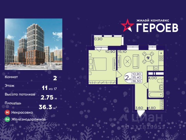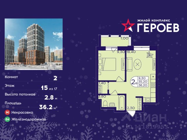 Продаётся 2-комнатная квартира в формате евро 36.20 кв. м. в жилом комплексе "Героев" в Балашихе, Железнодорожный. Квартира расположена на 15 этаже 413 корпуса. В наличии квартиры с отделкой. Всего 40 минут до центра Москвы. При покупке квартиры в сданном доме ключи выдаются сразу! Жилой квартал "Героев" - это уютный проект для семей с детьми. В квартале созданы все условия для досуга всех возрастов: игровые и спортивные площадки, места для отдыха и прогулочные зоны. За 15 минут можно дойти от дома до Ольгинского лесопарка, популярного места для отдыха на свежем воздухе. На территории жилого комплекса уже открыт детский сад на 250 мест и началось строительство еще одного - для 220 малышей, а также школы для 1320 учеников. Рядом работают магазины, кафе, супермаркеты, пункты выдачи. Преимущества: • В уютных светлых квартирах с просторными кухнями-гостиными удобно встречать гостей и проводить время наедине друг с другом. • Благодаря увеличенному остеклению в комнатах много света. • Квартиры продаются с отделкой, можно заселяться сразу после получения ключей.