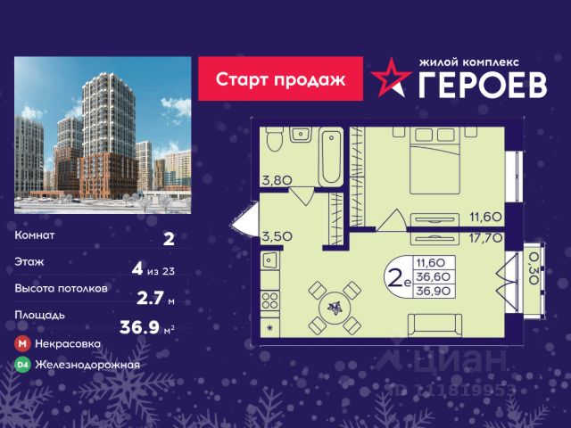 Продаётся 2-комнатная квартира в формате евро 36.90 кв. м. в жилом комплексе "Героев" в Балашихе, Железнодорожный. Квартира расположена на 4 этаже 610 корпуса. В наличии квартиры с отделкой. Всего 40 минут до центра Москвы. При покупке квартиры в сданном доме ключи выдаются сразу! Жилой квартал "Героев" - это уютный проект для семей с детьми. В квартале созданы все условия для досуга всех возрастов: игровые и спортивные площадки, места для отдыха и прогулочные зоны. За 15 минут можно дойти от дома до Ольгинского лесопарка, популярного места для отдыха на свежем воздухе. На территории жилого комплекса уже открыт детский сад на 250 мест и началось строительство еще одного - для 220 малышей, а также школы для 1320 учеников. Рядом работают магазины, кафе, супермаркеты, пункты выдачи. Преимущества: • В уютных светлых квартирах с просторными кухнями-гостиными удобно встречать гостей и проводить время наедине друг с другом. • Благодаря увеличенному остеклению в комнатах много света. • Квартиры продаются с отделкой, можно заселяться сразу после получения ключей.