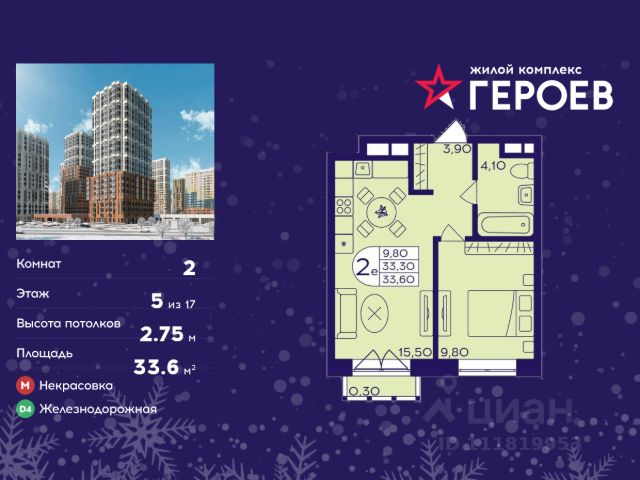 Продаётся 2-комнатная квартира в формате евро 33.40 кв. м. в жилом комплексе "Героев" в Балашихе, Железнодорожный. Квартира расположена на 17 этаже 410 корпуса. В наличии квартиры с отделкой. Всего 40 минут до центра Москвы. При покупке квартиры в сданном доме ключи выдаются сразу! Жилой квартал "Героев" - это уютный проект для семей с детьми. В квартале созданы все условия для досуга всех возрастов: игровые и спортивные площадки, места для отдыха и прогулочные зоны. За 15 минут можно дойти от дома до Ольгинского лесопарка, популярного места для отдыха на свежем воздухе. На территории жилого комплекса уже открыт детский сад на 250 мест и началось строительство еще одного - для 220 малышей, а также школы для 1320 учеников. Рядом работают магазины, кафе, супермаркеты, пункты выдачи. Преимущества: • В уютных светлых квартирах с просторными кухнями-гостиными удобно встречать гостей и проводить время наедине друг с другом. • Благодаря увеличенному остеклению в комнатах много света. • Квартиры продаются с отделкой, можно заселяться сразу после получения ключей.