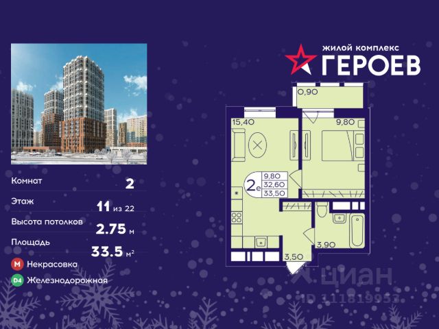 Продаётся 2-комнатная квартира в формате евро 33.50 кв. м. в жилом комплексе "Героев" в Балашихе, Железнодорожный. Квартира расположена на 11 этаже 410 корпуса. В наличии квартиры с отделкой. Всего 40 минут до центра Москвы. При покупке квартиры в сданном доме ключи выдаются сразу! Жилой квартал "Героев" - это уютный проект для семей с детьми. В квартале созданы все условия для досуга всех возрастов: игровые и спортивные площадки, места для отдыха и прогулочные зоны. За 15 минут можно дойти от дома до Ольгинского лесопарка, популярного места для отдыха на свежем воздухе. На территории жилого комплекса уже открыт детский сад на 250 мест и началось строительство еще одного - для 220 малышей, а также школы для 1320 учеников. Рядом работают магазины, кафе, супермаркеты, пункты выдачи. Преимущества: • В уютных светлых квартирах с просторными кухнями-гостиными удобно встречать гостей и проводить время наедине друг с другом. • Благодаря увеличенному остеклению в комнатах много света. • Квартиры продаются с отделкой, можно заселяться сразу после получения ключей.