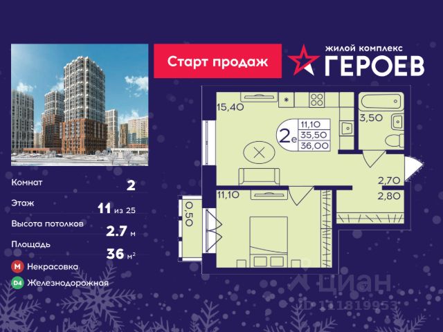 Продаётся 2-комнатная квартира в формате евро 34.70 кв. м. в жилом комплексе "Героев" в Балашихе, Железнодорожный. Квартира расположена на 20 этаже 410 корпуса. В наличии квартиры с отделкой. Всего 40 минут до центра Москвы. При покупке квартиры в сданном доме ключи выдаются сразу! Жилой квартал "Героев" - это уютный проект для семей с детьми. В квартале созданы все условия для досуга всех возрастов: игровые и спортивные площадки, места для отдыха и прогулочные зоны. За 15 минут можно дойти от дома до Ольгинского лесопарка, популярного места для отдыха на свежем воздухе. На территории жилого комплекса уже открыт детский сад на 250 мест и началось строительство еще одного - для 220 малышей, а также школы для 1320 учеников. Рядом работают магазины, кафе, супермаркеты, пункты выдачи. Преимущества: • В уютных светлых квартирах с просторными кухнями-гостиными удобно встречать гостей и проводить время наедине друг с другом. • Благодаря увеличенному остеклению в комнатах много света. • Квартиры продаются с отделкой, можно заселяться сразу после получения ключей.