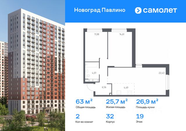 • ✅ Минимальная площадь: 43,4 м²