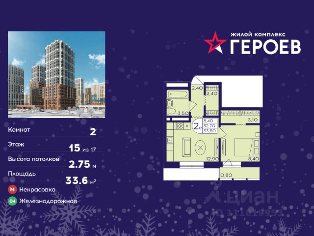 Продаётся 2-комнатная квартира в формате евро 33.60 кв. м. в жилом комплексе "Героев" в Балашихе, Железнодорожный. Квартира расположена на 15 этаже 407 корпуса. В наличии квартиры с отделкой. Всего 40 минут до центра Москвы. При покупке квартиры в сданном доме ключи выдаются сразу! Жилой квартал "Героев" - это уютный проект для семей с детьми. В квартале созданы все условия для досуга всех возрастов: игровые и спортивные площадки, места для отдыха и прогулочные зоны. За 15 минут можно дойти от дома до Ольгинского лесопарка, популярного места для отдыха на свежем воздухе. На территории жилого комплекса уже открыт детский сад на 250 мест и началось строительство еще одного - для 220 малышей, а также школы для 1320 учеников. Рядом работают магазины, кафе, супермаркеты, пункты выдачи. Преимущества: • В уютных светлых квартирах с просторными кухнями-гостиными удобно встречать гостей и проводить время наедине друг с другом. • Благодаря увеличенному остеклению в комнатах много света. • Квартиры продаются с отделкой, можно заселяться сразу после получения ключей.
