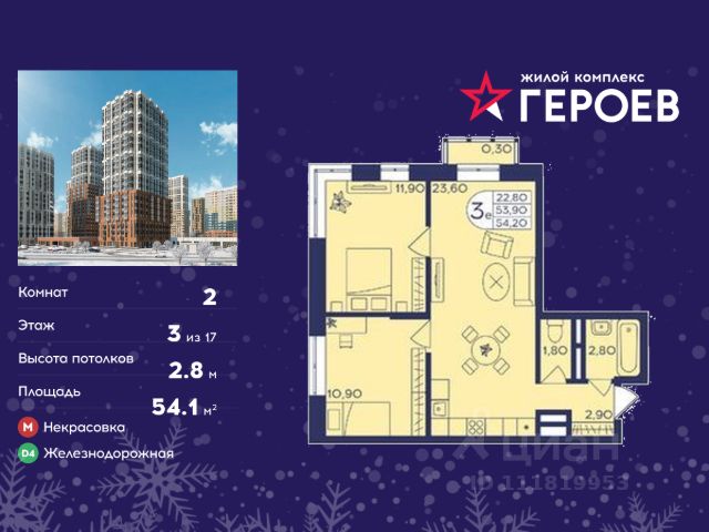 Продаётся 2-комнатная квартира 53.00 кв. м. в жилом комплексе "Героев" в Балашихе, Железнодорожный. Квартира расположена на 5 этаже 410 корпуса. В наличии квартиры с отделкой. Всего 40 минут до центра Москвы. При покупке квартиры в сданном доме ключи выдаются сразу! Жилой квартал "Героев" - это уютный проект для семей с детьми. В квартале созданы все условия для досуга всех возрастов: игровые и спортивные площадки, места для отдыха и прогулочные зоны. За 15 минут можно дойти от дома до Ольгинского лесопарка, популярного места для отдыха на свежем воздухе. На территории жилого комплекса уже открыт детский сад на 250 мест и началось строительство еще одного - для 220 малышей, а также школы для 1320 учеников. Рядом работают магазины, кафе, супермаркеты, пункты выдачи. Преимущества: • В уютных светлых квартирах с просторными кухнями-гостиными удобно встречать гостей и проводить время наедине друг с другом. • Благодаря увеличенному остеклению в комнатах много света. • Квартиры продаются с отделкой, можно заселяться сразу после получения ключей. 2-комнатная квартира первичка в Балашихе.
