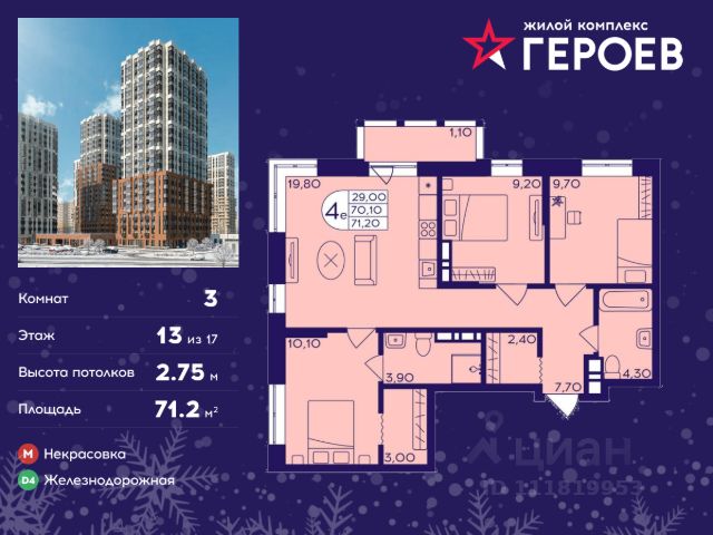Продаётся 3-комнатная квартира 71.40 кв. м. в жилом комплексе "Героев" в Балашихе, Железнодорожный. Квартира расположена на 13 этаже 410 корпуса. В наличии квартиры с отделкой. Всего 40 минут до центра Москвы. При покупке квартиры в сданном доме ключи выдаются сразу! Жилой квартал "Героев" - это уютный проект для семей с детьми. В квартале созданы все условия для досуга всех возрастов: игровые и спортивные площадки, места для отдыха и прогулочные зоны. За 15 минут можно дойти от дома до Ольгинского лесопарка, популярного места для отдыха на свежем воздухе. На территории жилого комплекса уже открыт детский сад на 250 мест и началось строительство еще одного - для 220 малышей, а также школы для 1320 учеников. Рядом работают магазины, кафе, супермаркеты, пункты выдачи. Преимущества: • В уютных светлых квартирах с просторными кухнями-гостиными удобно встречать гостей и проводить время наедине друг с другом. • Благодаря увеличенному остеклению в комнатах много света. • Квартиры продаются с отделкой, можно заселяться сразу после получения ключей.