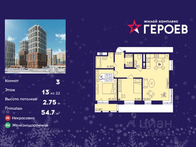 Продаётся 3-комнатная квартира в формате евро 54.70 кв. м. в жилом комплексе "Героев" в Балашихе, Железнодорожный. Квартира расположена на 13 этаже 410 корпуса. В наличии квартиры с отделкой. Всего 40 минут до центра Москвы. При покупке квартиры в сданном доме ключи выдаются сразу! Жилой квартал "Героев" - это уютный проект для семей с детьми. В квартале созданы все условия для досуга всех возрастов: игровые и спортивные площадки, места для отдыха и прогулочные зоны. За 15 минут можно дойти от дома до Ольгинского лесопарка, популярного места для отдыха на свежем воздухе. На территории жилого комплекса уже открыт детский сад на 250 мест и началось строительство еще одного - для 220 малышей, а также школы для 1320 учеников. Рядом работают магазины, кафе, супермаркеты, пункты выдачи. Преимущества: • В уютных светлых квартирах с просторными кухнями-гостиными удобно встречать гостей и проводить время наедине друг с другом. • Благодаря увеличенному остеклению в комнатах много света. • Квартиры продаются с отделкой, можно заселяться сразу после получения ключей.