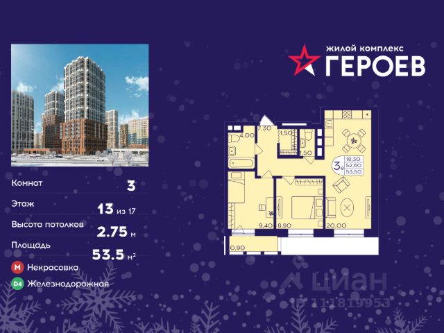 Продаётся 3-комнатная квартира в формате евро 53.30 кв. м. в жилом комплексе "Героев" в Балашихе, Железнодорожный. Квартира расположена на 13 этаже 410 корпуса. В наличии квартиры с отделкой. Всего 40 минут до центра Москвы. При покупке квартиры в сданном доме ключи выдаются сразу! Жилой квартал "Героев" - это уютный проект для семей с детьми. В квартале созданы все условия для досуга всех возрастов: игровые и спортивные площадки, места для отдыха и прогулочные зоны. За 15 минут можно дойти от дома до Ольгинского лесопарка, популярного места для отдыха на свежем воздухе. На территории жилого комплекса уже открыт детский сад на 250 мест и началось строительство еще одного - для 220 малышей, а также школы для 1320 учеников. Рядом работают магазины, кафе, супермаркеты, пункты выдачи. Преимущества: • В уютных светлых квартирах с просторными кухнями-гостиными удобно встречать гостей и проводить время наедине друг с другом. • Благодаря увеличенному остеклению в комнатах много света. • Квартиры продаются с отделкой, можно заселяться сразу после получения ключей.