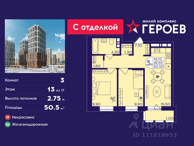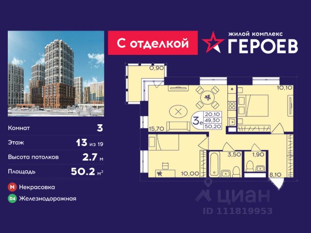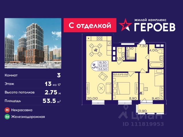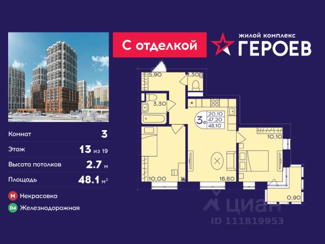 Строим кварталы для жизни с заботой о будущем. Предлагается 3-комнатная квартира комфорт-класса площадью 86,82 кв.м в корпусе 4 на 13-м этаже, в жилом комплексе "Квартал Авиаторов". Квартиры комплекса — на выбор: могут быть как с отделкой, так и без. В случае с готовой отделкой в комнатах и прихожей уже будут обои, натяжные потолки и ламинат, а в санузлах — керамогранит на полу и керамическая плитка на стенах. Мы подведем все коммуникации и установим сантехнику. Помимо базовой отделки, вы можете дополнительно выбрать улучшенную версию. В ней используются износостойкие материалы, ударопрочные плинтуса, ламинат с фаской — все для долговечного использования. Приобрести квартиру возможно по специальным акциям от застройщика, с текущими условиями акций можно ознакомиться в блоке "Акций". Цена динамическая и может отличаться, уточняйте актуальность у застройщика. "Квартал Авиаторов" — жилой комплекс комфорт-класса, расположенный в 2 км от железнодорожной станции Балашиха (5 минут на автомобиле, 30 минут пешком). Поблизости — Горенский лесопарк и заповедник "Лосиный остров". В проекте предусмотрены закрытые дворы с детскими и спортивными площадками, безбарьерная среда.