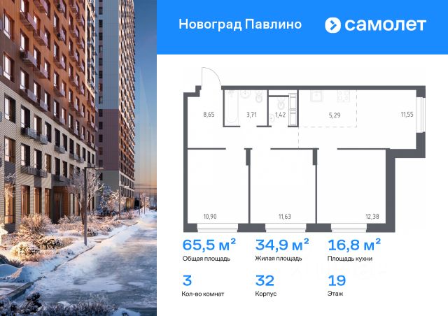 • ✅ Минимальная площадь: 65,5 м²