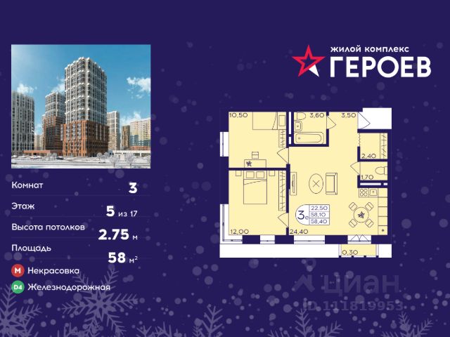 Продаётся 3-комнатная квартира в формате евро 58.00 кв. м. в жилом комплексе "Героев" в Балашихе, Железнодорожный. Квартира расположена на 5 этаже 407 корпуса. В наличии квартиры с отделкой. Всего 40 минут до центра Москвы. При покупке квартиры в сданном доме ключи выдаются сразу! Жилой квартал "Героев" - это уютный проект для семей с детьми. В квартале созданы все условия для досуга всех возрастов: игровые и спортивные площадки, места для отдыха и прогулочные зоны. За 15 минут можно дойти от дома до Ольгинского лесопарка, популярного места для отдыха на свежем воздухе. На территории жилого комплекса уже открыт детский сад на 250 мест и началось строительство еще одного - для 220 малышей, а также школы для 1320 учеников. Рядом работают магазины, кафе, супермаркеты, пункты выдачи. Преимущества: • В уютных светлых квартирах с просторными кухнями-гостиными удобно встречать гостей и проводить время наедине друг с другом. • Благодаря увеличенному остеклению в комнатах много света. • Квартиры продаются с отделкой, можно заселяться сразу после получения ключей.