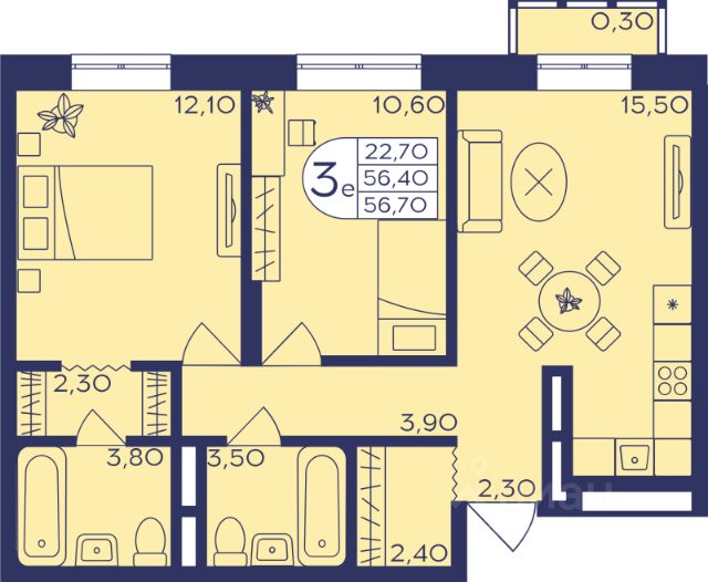 Продаётся 3-комнатная квартира в сданном доме (улица Поликахина, 2 (Корпус 305)), срок сдачи: III-кв. 2022, общей площадью 81.4 кв.м., на 12 этаже. Расположение в самом центре города обеспечивает доступ к богатой торговой, развлекательной, социальной инфраструктуре Железнодорожного. При этом собственная инфраструктура микрорайона сделает "Центр-2" не только географическим, но и общественным центром жизни города Железнодорожный. Территория микрорайона делится на две части широким благоустроенным бульваром. На первых этажах домов расположатся магазины, кафе, рестораны, точки сервисного обслуживания, салоны красоты. Для жителей микрорайона "Центр-2" свои двери откроют две школы и два детских сада, детская и взрослая поликлиники, музыкальная школа, спортивно-оздоровительный комплекс. В настоящее время уже открыты и успешно функционируют общеобразовательная школа и детский сад. Внутренние территории микрорайона благоустроены и оборудованы зонами отдыха, детскими, игровыми и спортивными площадками. Для автомобилистов предусмотрены автостоянки. Время в пути личным автотранспортом от ЖК "Центр-2" составляет порядка 35-40 минут центра Москвы . Дорога до Курского вокзала от платформы "Железнодорожная" на электропоезде "Спутник" занимает всего 23 минуты. Добраться до станции пешком жители ЖК "Центр-2" могут за 15 минут, городским транспортом — за 5-7 минут. Рейсовые автобусы и маршрутные такси связывают микрорайон со станциями метро "Выхино" (100), "Новокосино" и "Новогиреево" (142), время в пути — 25-40 минут. В 2018 году в 10-минутной доступности от ЖК "Центр-2" открывается станция метро "Некрасовка".