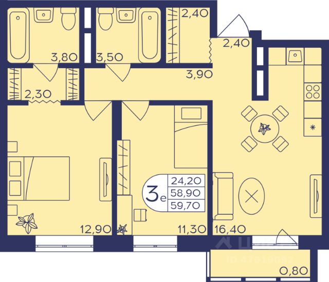 Продаётся 3-комнатная квартира в строящемся доме (Корпус 410), срок сдачи: I-кв. 2027, общей площадью 53 кв.м., на 19 этаже. ЖК "Героев" возводится в центре г.о. Балашиха, в мкрн Железнодорожный. Проект представляет собой 4 квартала монолитно-кирпичных домов комфорт-класса. Предлагаются студии, 1-, 2- и 3-комнатные квартиры с готовой отделкой; планировки - евро и классика. На территории построят детские сады и школы. В центральной части застройки оборудуют зоны для спорта и командных спортивных игр, велодорожки, детские игровые площадки и сквер с местами для отдыха. На первых этажах жилых корпусов будут магазины, банки, кафе и другие предприятия сферы услуг и торговли. Возле домов организуют авто- и велопарковки. В пешей доступности находится обширная зелёная зона - Ольгинский лесопарк, а также обжитые районы с развитой инфраструктурой, где работают детские сады и гимназии, поликлиники и ТЦ, школа искусств, спорткомплекс. Рядом с комплексом находится несколько остановок общественного транспорта. До метро "Некрасовка" можно добраться за 20 мин. на автобусе. В 5-7 минутах езды на маршрутке или в 15-20 минутах ходьбы располагается ст. Железнодорожная, путь со станции до Курского вокзала занимает 25 минут на "Спутнике". Кроме того, планируется запуск МЦД-4 от Железнодорожного до Апрелевки с переходами на метро и МЦК. На автомобиле до Москвы можно доехать за полчаса по Носовихинскому или Косинскому шоссе.