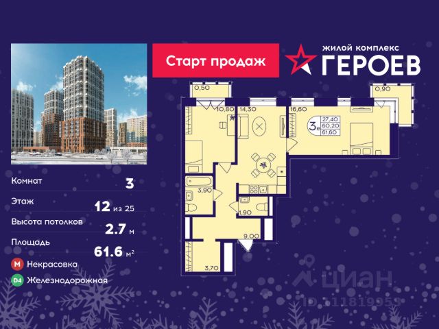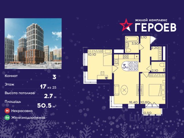Продаётся 3-комнатная квартира в формате евро 50.20 кв. м. в жилом комплексе "Героев" в Балашихе, Железнодорожный. Квартира расположена на 7 этаже 611 корпуса. В наличии квартиры с отделкой. Всего 40 минут до центра Москвы. При покупке квартиры в сданном доме ключи выдаются сразу! Жилой квартал "Героев" - это уютный проект для семей с детьми. В квартале созданы все условия для досуга всех возрастов: игровые и спортивные площадки, места для отдыха и прогулочные зоны. За 15 минут можно дойти от дома до Ольгинского лесопарка, популярного места для отдыха на свежем воздухе. На территории жилого комплекса уже открыт детский сад на 250 мест и началось строительство еще одного - для 220 малышей, а также школы для 1320 учеников. Рядом работают магазины, кафе, супермаркеты, пункты выдачи. Преимущества: • В уютных светлых квартирах с просторными кухнями-гостиными удобно встречать гостей и проводить время наедине друг с другом. • Благодаря увеличенному остеклению в комнатах много света. • Квартиры продаются с отделкой, можно заселяться сразу после получения ключей.