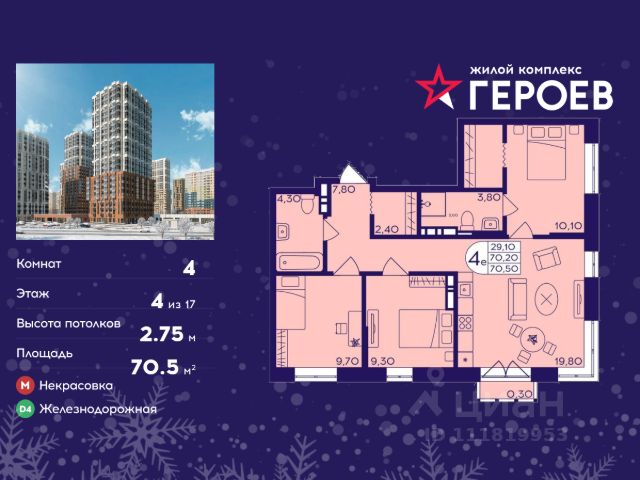 • ✓ В базе Циан 11 4-комнатных квартир на 4 этаже в Балашихе