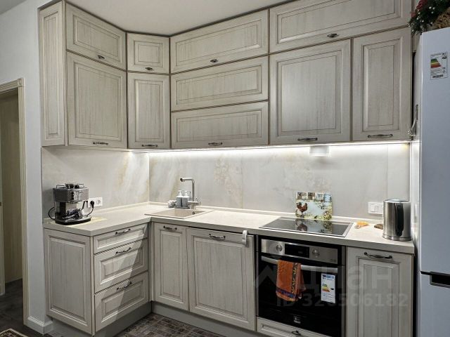 Потолки с точечным освещением, система подогрева пола в санузлах и на кухне, водонагреватель на период плановых отключений.
