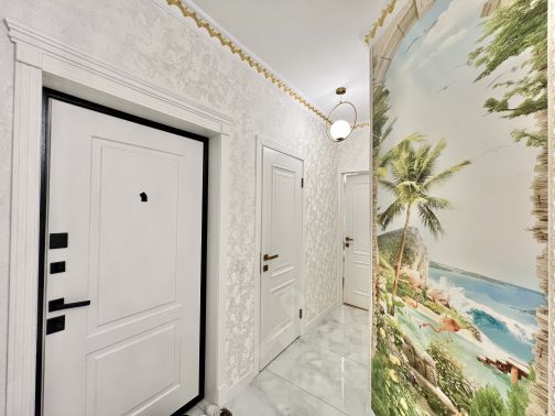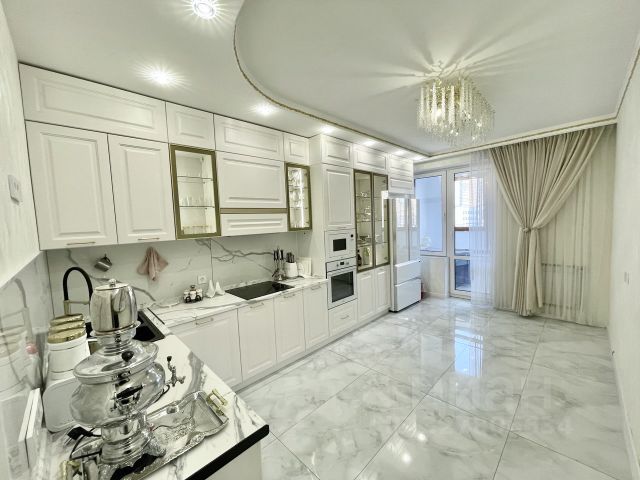 В целом квартира в хорошем состоянии. Кухня 8,3 кв. м, спальня и детская на разные стороны квартиры (по 12 кв. м каждая), гостиная, гардеробная комната, два туалета (один совмещен с ванной), лоджия с ремонтом. В ванной есть накопитель воды на период отключения воды.