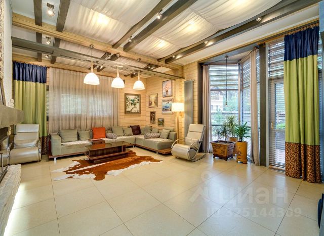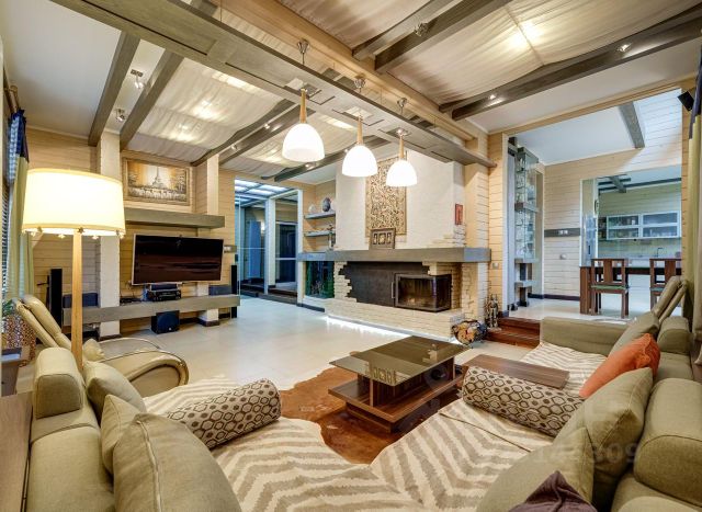 Первый этаж кухня, оборудованная бытовой техникой ведущих мировых производителей, гостиная-диванная, кабинет, гостевая спальня, два санузла, банный комплекс (бочка-Алтай, Русская баня, хамам), бассейн (имеется так же уличный стационарный бассейн), бильярдная, камин (на дровах), гараж на 2 автомобиля с входом в дом.