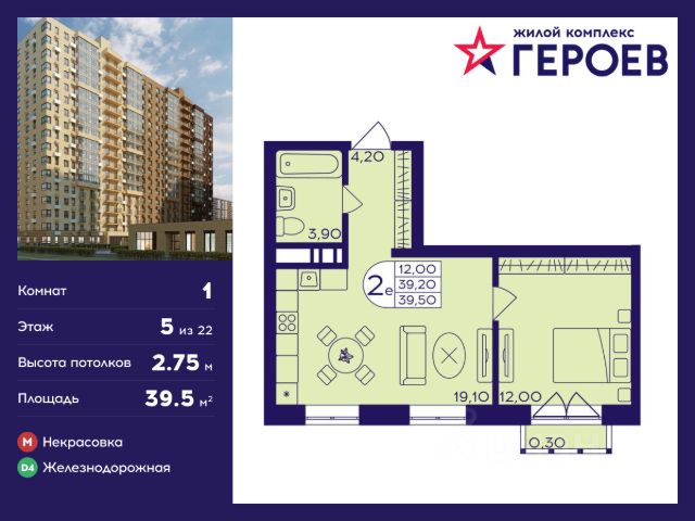 Продаётся 1-комнатная квартира 39.30 кв. м. в жилом комплексе "Героев" в Балашихе, Железнодорожный. Квартира расположена на 2 этаже 411 корпуса. В наличии квартиры с отделкой. Всего 40 минут до центра Москвы. При покупке квартиры в сданном доме ключи выдаются сразу! Жилой квартал "Героев" - это уютный проект для семей с детьми. В квартале созданы все условия для досуга всех возрастов: игровые и спортивные площадки, места для отдыха и прогулочные зоны. За 15 минут можно дойти от дома до Ольгинского лесопарка, популярного места для отдыха на свежем воздухе. На территории жилого комплекса уже открыт детский сад на 250 мест и началось строительство еще одного - для 220 малышей, а также школы для 1320 учеников. Рядом работают магазины, кафе, супермаркеты, пункты выдачи. Преимущества: • В уютных светлых квартирах с просторными кухнями-гостиными удобно встречать гостей и проводить время наедине друг с другом. • Благодаря увеличенному остеклению в комнатах много света. • Квартиры продаются с отделкой, можно заселяться сразу после получения ключей. Купить квартиру площадью примерно 40 м2 (кв.м.) в Балашихе.