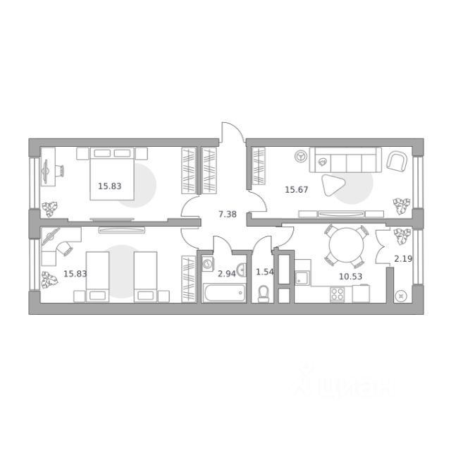 Продаётся 3-комнатная квартира 15, площадью 69,55 м², на 4 этаже в ЖК "Пехра" корпус 8.1. Стоимость — от 12969442 руб. Квартира без отделки, планировка угловая, окна во двор.