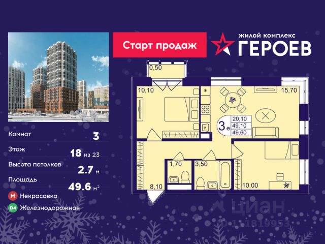 Продаётся 3-комнатная квартира в формате евро 50.20 кв. м. в жилом комплексе "Героев" в Балашихе, Железнодорожный. Квартира расположена на 5 этаже 611 корпуса. В наличии квартиры с отделкой. Всего 40 минут до центра Москвы. При покупке квартиры в сданном доме ключи выдаются сразу! Жилой квартал "Героев" - это уютный проект для семей с детьми. В квартале созданы все условия для досуга всех возрастов: игровые и спортивные площадки, места для отдыха и прогулочные зоны. За 15 минут можно дойти от дома до Ольгинского лесопарка, популярного места для отдыха на свежем воздухе. На территории жилого комплекса уже открыт детский сад на 250 мест и началось строительство еще одного - для 220 малышей, а также школы для 1320 учеников. Рядом работают магазины, кафе, супермаркеты, пункты выдачи. Преимущества: • В уютных светлых квартирах с просторными кухнями-гостиными удобно встречать гостей и проводить время наедине друг с другом. • Благодаря увеличенному остеклению в комнатах много света. • Квартиры продаются с отделкой, можно заселяться сразу после получения ключей. Продам квартиру с кухней гостиной в Балашихе.