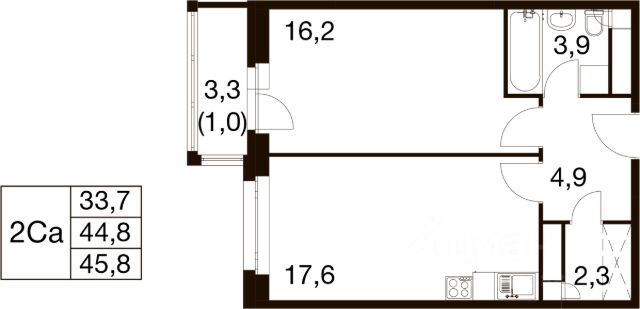 • ✅ Минимальная площадь: 30,4 м²