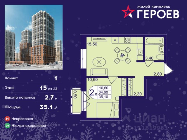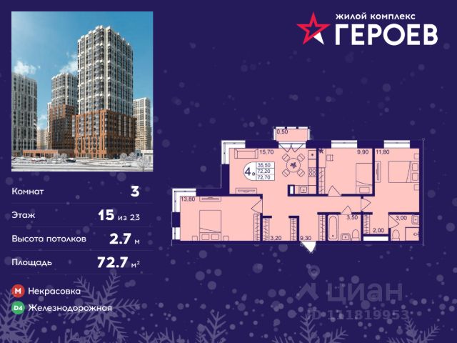 Продаётся 4-комнатная квартира 71.40 кв. м. в жилом комплексе "Героев" в Балашихе, Железнодорожный. Квартира расположена на 15 этаже 410 корпуса. В наличии квартиры с отделкой. Всего 40 минут до центра Москвы. При покупке квартиры в сданном доме ключи выдаются сразу! Жилой квартал "Героев" - это уютный проект для семей с детьми. В квартале созданы все условия для досуга всех возрастов: игровые и спортивные площадки, места для отдыха и прогулочные зоны. За 15 минут можно дойти от дома до Ольгинского лесопарка, популярного места для отдыха на свежем воздухе. На территории жилого комплекса уже открыт детский сад на 250 мест и началось строительство еще одного - для 220 малышей, а также школы для 1320 учеников. Рядом работают магазины, кафе, супермаркеты, пункты выдачи. Преимущества: • В уютных светлых квартирах с просторными кухнями-гостиными удобно встречать гостей и проводить время наедине друг с другом. • Благодаря увеличенному остеклению в комнатах много света. • Квартиры продаются с отделкой, можно заселяться сразу после получения ключей.