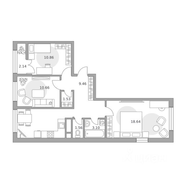 Продаётся 3-комнатная квартира 15, площадью 69,55 м², на 4 этаже в ЖК "Пехра" корпус 8.1. Стоимость — от 13133612 руб. Квартира без отделки, планировка угловая, окна во двор.
