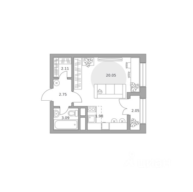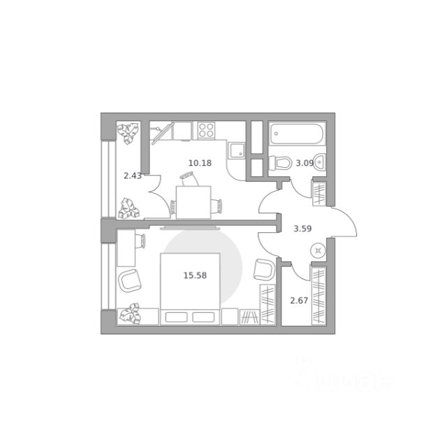 Продаётся студия 198, площадью 29,23 м², на 6 этаже в ЖК "Новая Алексеевская роща" корпус 5. Стоимость — от 5550070 руб. Квартира без отделки, планировка односторонняя, окна во двор.