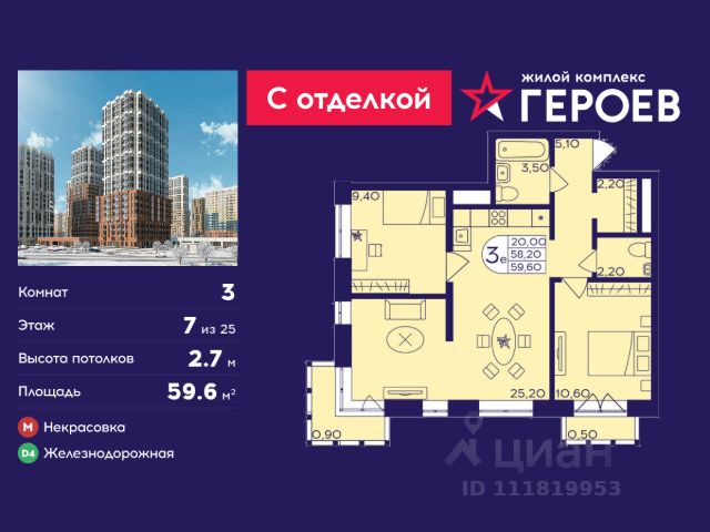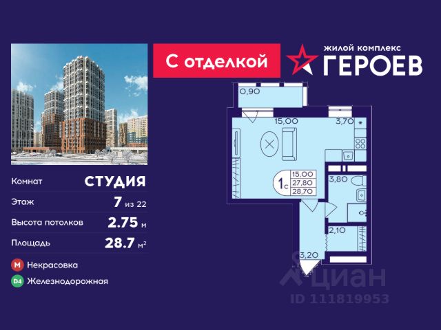 Продаётся 2-комнатная квартира 36.5 кв. м. в жилом комплексе "Героев" в Балашихе, Железнодорожный. Квартира расположена на 7 этаже 611 корпуса. Все квартиры представлены с чистовой отделкой. Вам не нужно тратить время и дополнительные финансы на ремонт или жить в шуме строительных работ - достаточно перевести свои вещи, расставить мебель и всё готово! Жилой квартал "Героев" - это уютный проект для семей с детьми. Всего 40 минут до центра Москвы. В квартале созданы все условия для досуга всех возрастов: игровые и спортивные площадки, места для отдыха и прогулок, магазины, кафе и пункты выдачи. За 15 минут можно дойти от дома до Ольгинского лесопарка - популярного места для прогулок и отдыха на свежем воздухе. Здесь приятно гулять всей семьёй, заниматься спортом или устроить пикник в выходной день. Преимущества: Квартира с готовой отделкой. Пространство полностью подготовлено для жизни: не нужно тратить время и деньги на ремонт или ждать его окончания. После получения ключей достаточно расставить мебель - и можно сразу заезжать и жить. Продуманные и светлые планировки. Просторные кухни-гостиные создают комфортное пространство для отдыха и встреч с близкими. В квартирах предусмотрены удобные гардеробные, благодаря чему легко поддерживать порядок и не перегружать комнаты шкафами. Увеличенное остекление. Большие окна наполняют квартиру естественным светом в течение всего дня, создавая ощущение простора и уюта, а также визуально расширяя пространство и делая интерьер более воздушным. Пешая доступность до станции Железнодорожная (МЦД-4) - дорога займёт не более 30 минут до центра Москвы: станции метро "Курская", "Площадь Ильича" или ТПУ Нижегородская.
