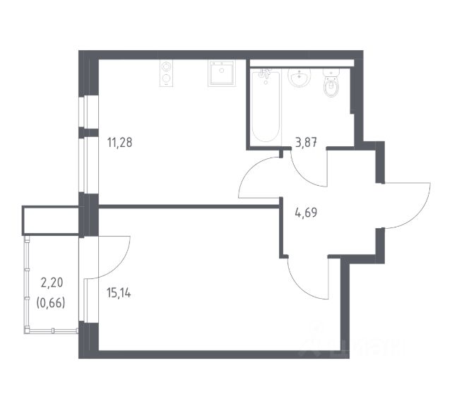 В продаже студия в корпусе 8 ЖК 'Квартал Авиаторов'. Квартира располагается на 9 этаже, общая площадь 26.9 м2.