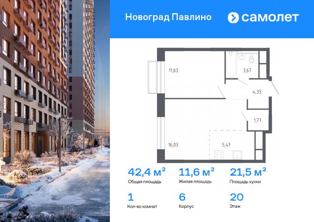 Строим кварталы для жизни с заботой о будущем. Предлагается 1-комнатная квартира комфорт-класса 33,2 кв.м в корпусе 6 на 22 этаже, в ЖК "Новоград Павлино" Квартира с предчистовой отделкой. Доступность дополнительных опций уточняйте у застройщика. Приобрести квартиру возможно по специальным акциям от застройщика, с текущими условиями акций можно ознакомиться в блоке "Акций". Цена динамическая и может отличаться, уточняйте актуальность у застройщика. "Новоград Павлино" находится в 13 км от МКАД рядом с рекой Пехорка и в окружении трех лесопарков - Павлинского, Салтыковского и Ольгинского. Современные монолитно-кирпичные дома с широким выбором квартир. В жилом комплексе представлены разные планировки европейского формата с высотой потолков 2,8 м. Продается квартира в микрорайоне Новое Павлино в городе Балашиха.