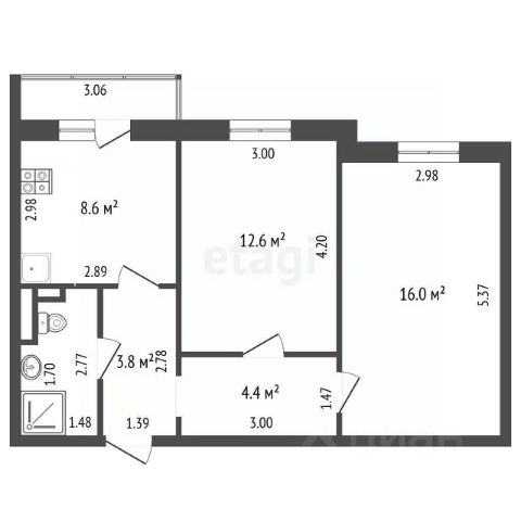 • ✅ Объект наибольшей площади: 51,6 м²