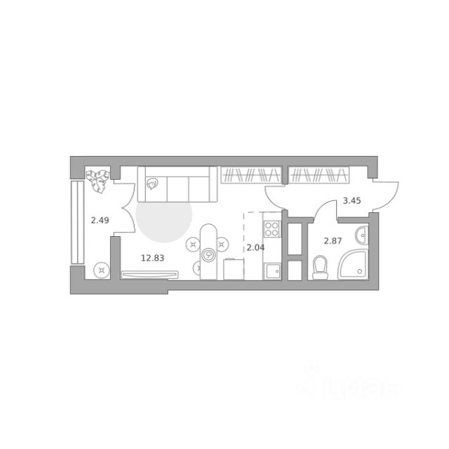 Продаётся студия 1029, площадью 23,68 м², на 2 этаже в ЖК "Пехра" корпус 1. Стоимость — от 6301409 руб. Квартира с отделкой, планировка односторонняя, окна во двор.